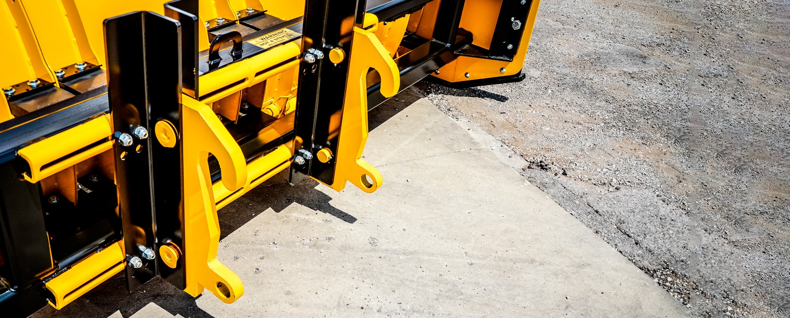 Quick-connect universal coupler that floats and self-levels. Keeps all wheels on the ground for traction and is compatible with bucket, skid steer, loader, or backhoe mounts.